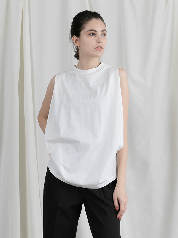 定番人気のノースリーブカットソー。微光沢のあるシルケット天竺素材を使用しているため、カジュアル過ぎずに大人な仕上がりに。一枚でもインナーでも幅広くお使いいただけるこれからの季節のマストアイテム。洗濯にも強く、シワになりにくいので洗いあがりのままアイロンいらずで着用できるのもうれしいポイントです。