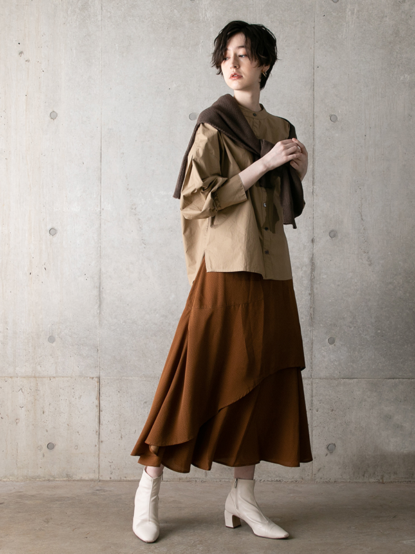 トップスや足元をシンプルに合わせ、春らしいコーディネートを楽しんで。
