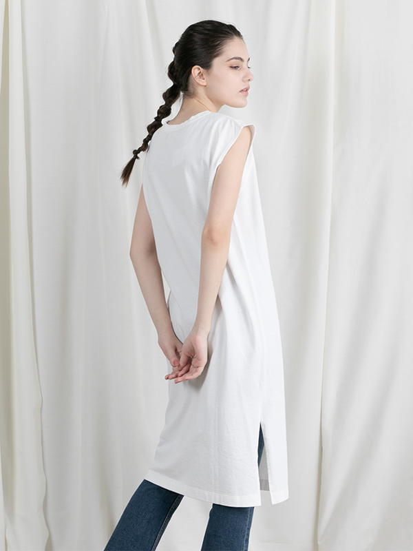 昨年人気のノースリーブワンピースが抗菌・抗臭・抗UVと今欠かせない機能を持った素材を使用して再登場しました。裾に長めに入ったスリットで足さばきも良く、パンツやスカートと重ねてもすっきり着こなせます。お手入れしやすい綿100%素材で、毎日着てしまいたくなる1枚です。
