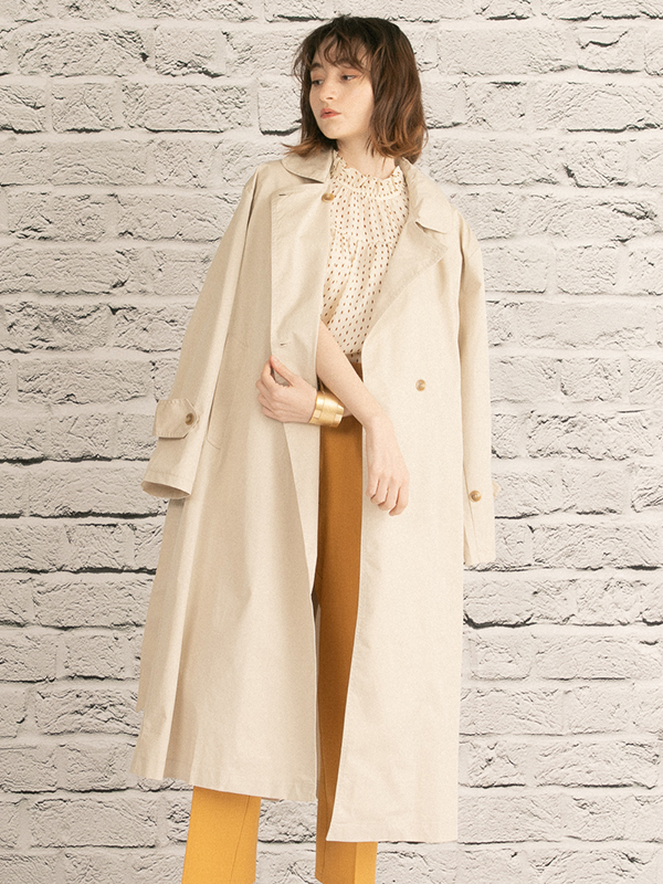 ハリがありながら薄手で使い勝手の良いオーバーサイズトレンチコート。さっと羽織るだけでこなれて見えてる春に一枚は持っておきたいアイテム。あえてラフに着崩すように着こなして欲しい一着です。飽きの来ないシンプルなデザインも魅力です。